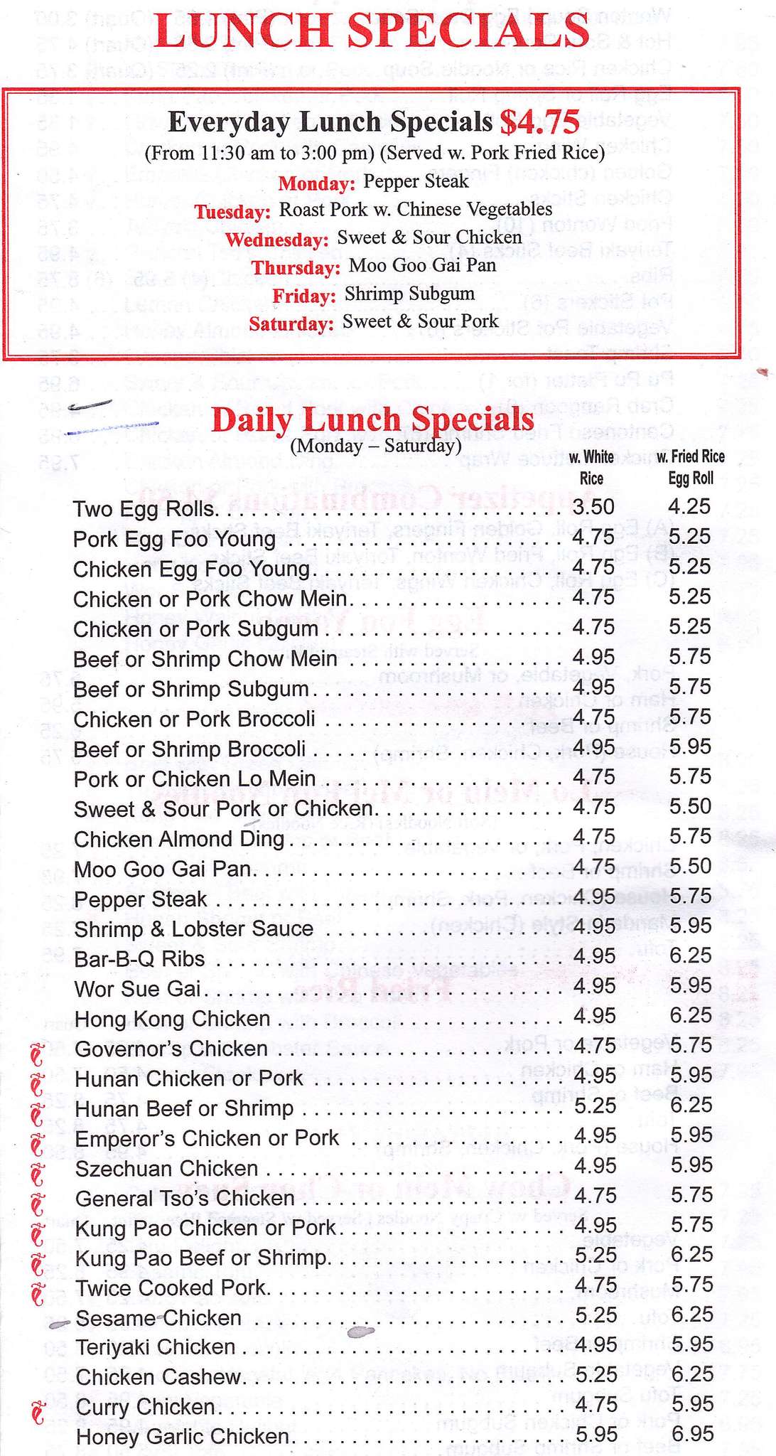Menu Of Mandarin House Chinese Parma Cleveland